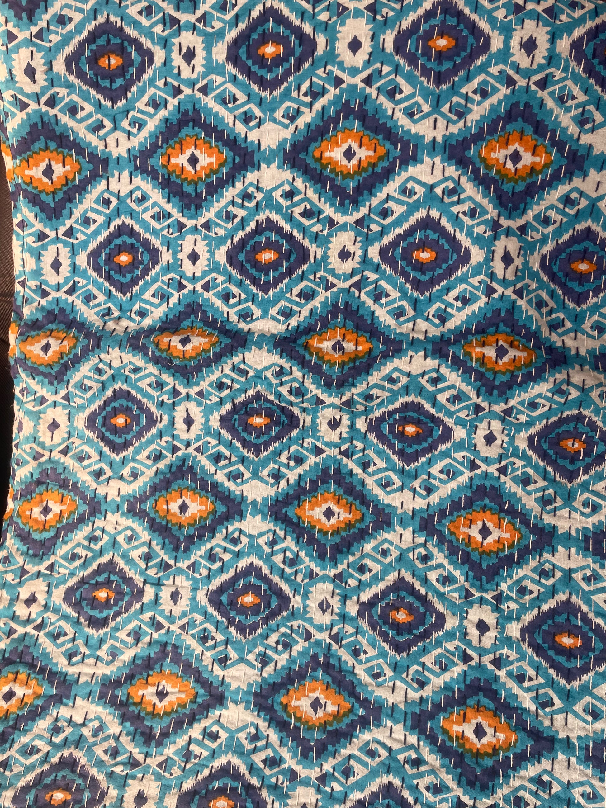 Handmade Kantha Work Patola Blue Print Blackout Curtain | Unique Design