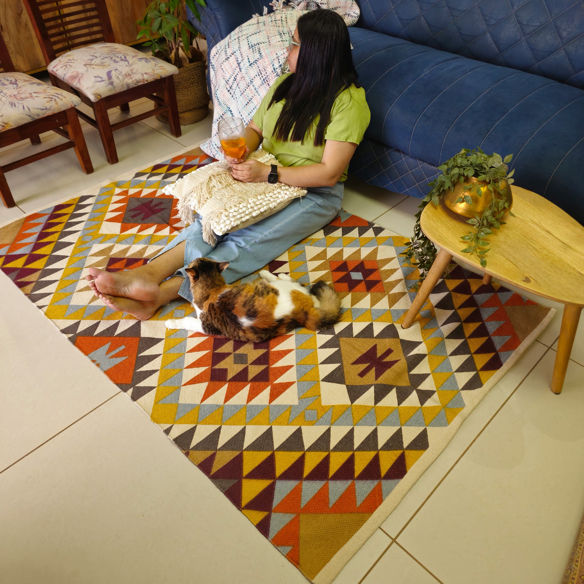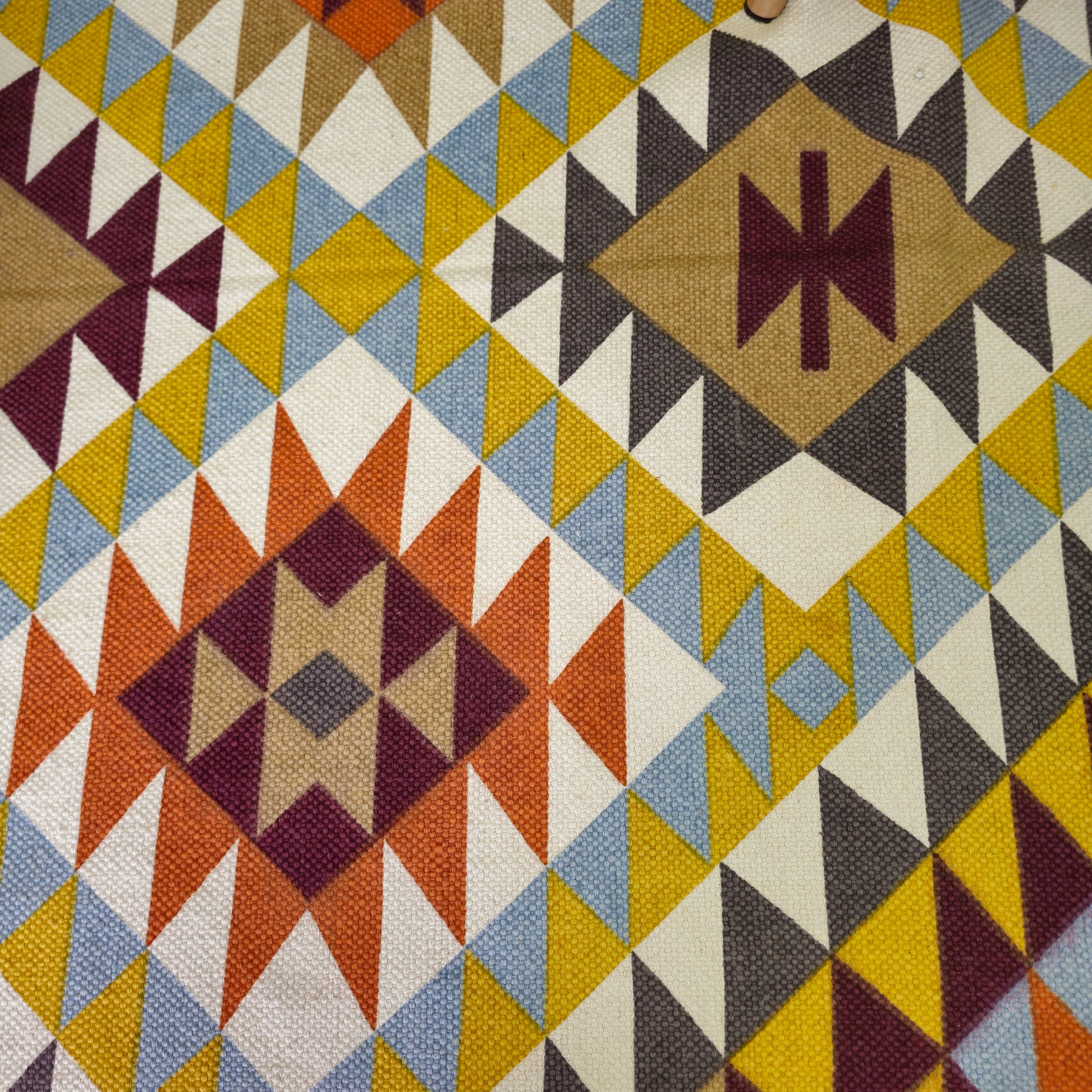 Multicolor Geometric Print Cotton Rug | Best-Selling Handwoven Carpet
